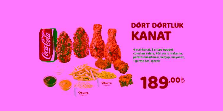 Dört Dörtlük Kanat Menü, hem kanat hem de çıtır nugget sevenler için oluşturulmuş, tadı damakta kalan bir menüdür. Farklı çıtır tavuk lezzetlerini tek bir menüde buluşturur.
